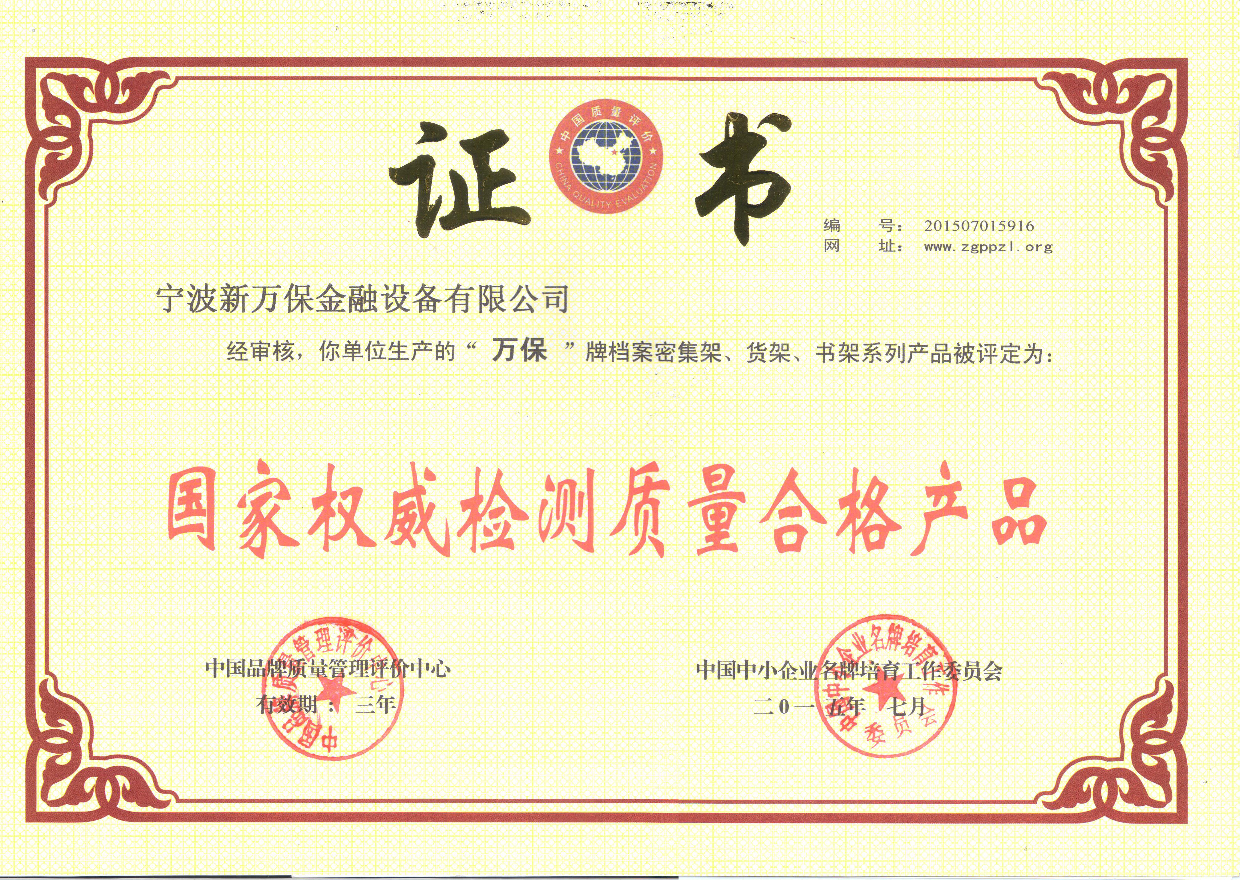 國(guó)家權(quán)威檢測(cè)質(zhì)量合格產(chǎn)品證書(shū)