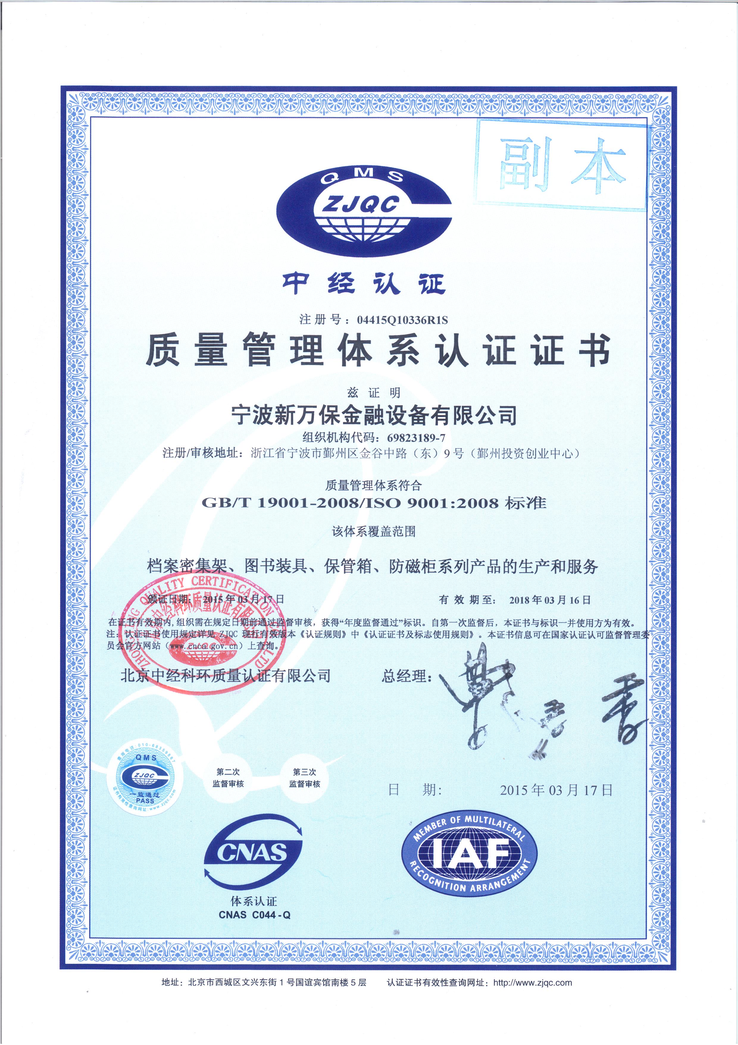 質(zhì)量管理體系認(rèn)證證書(shū)
