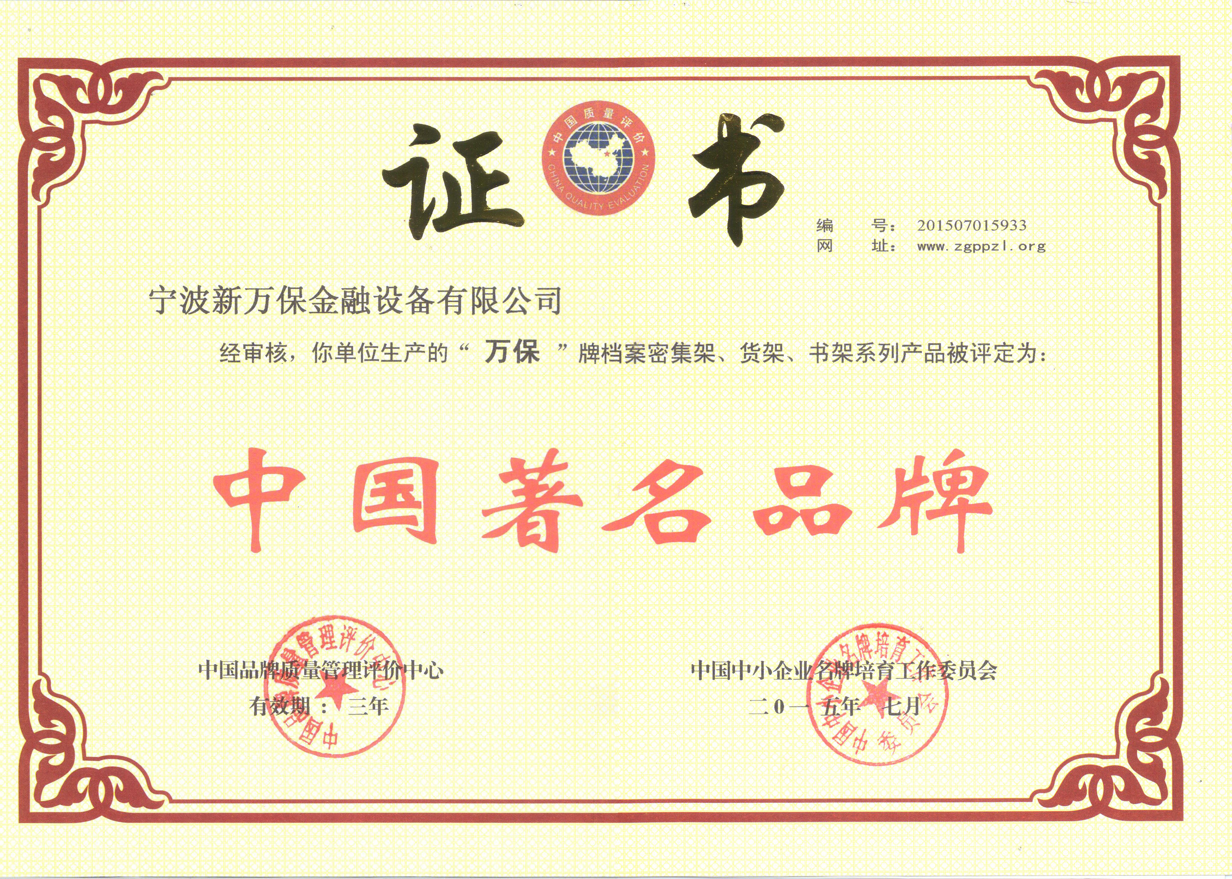 中國(guó)著名品牌證書(shū)