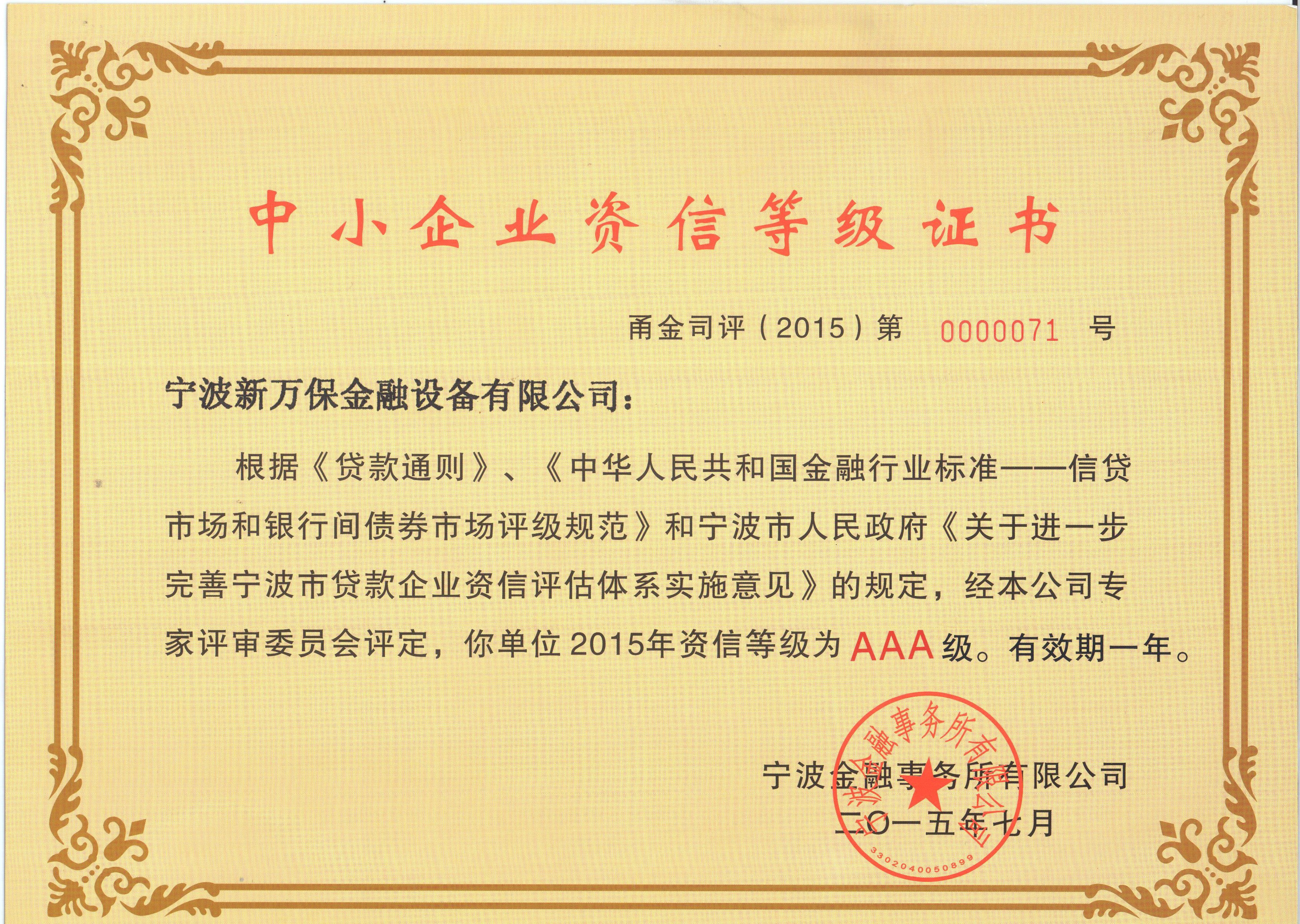中小企業(yè)資信等級(jí)AAA證書(shū)