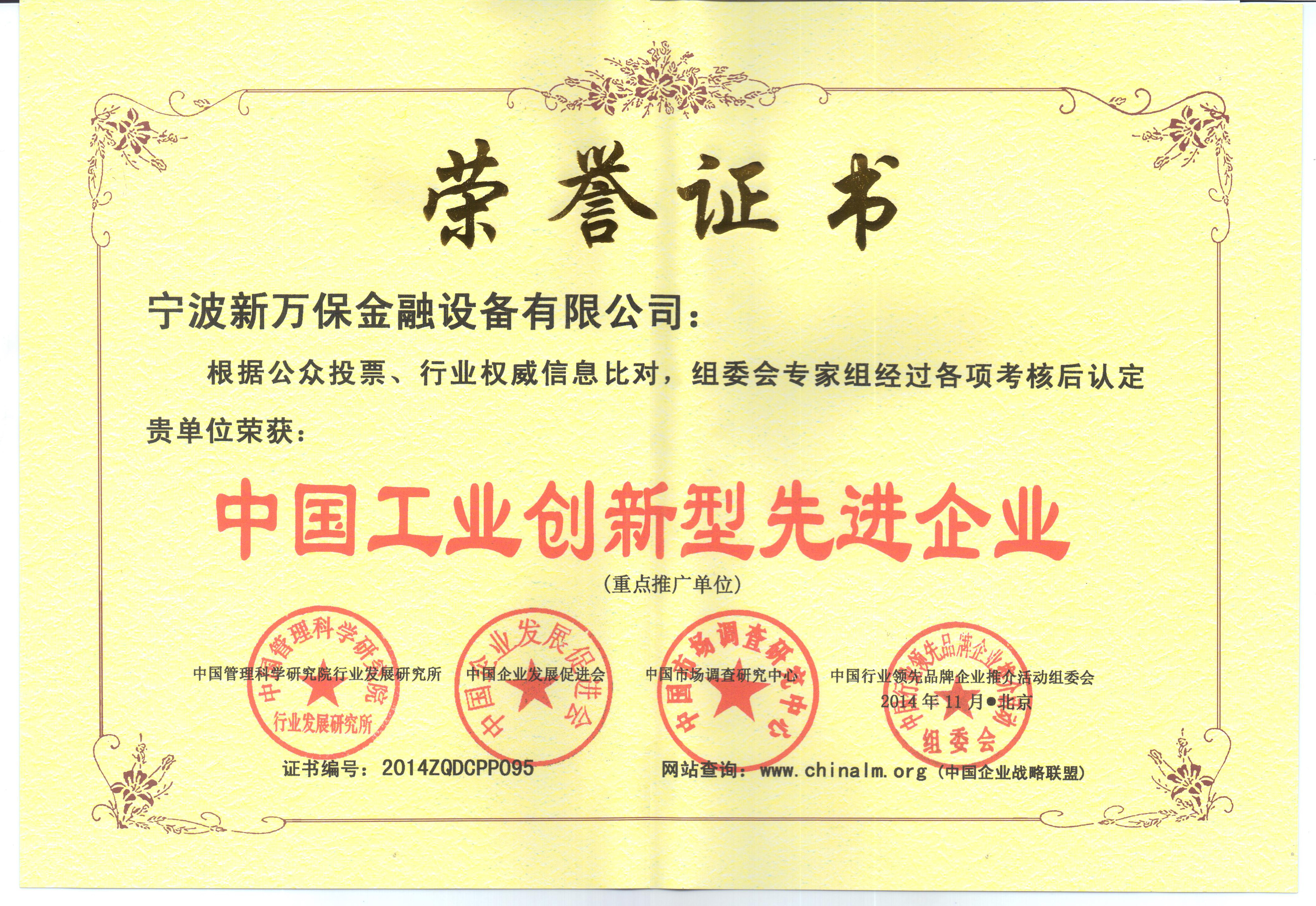 先進(jìn)企業(yè)證書(shū)
