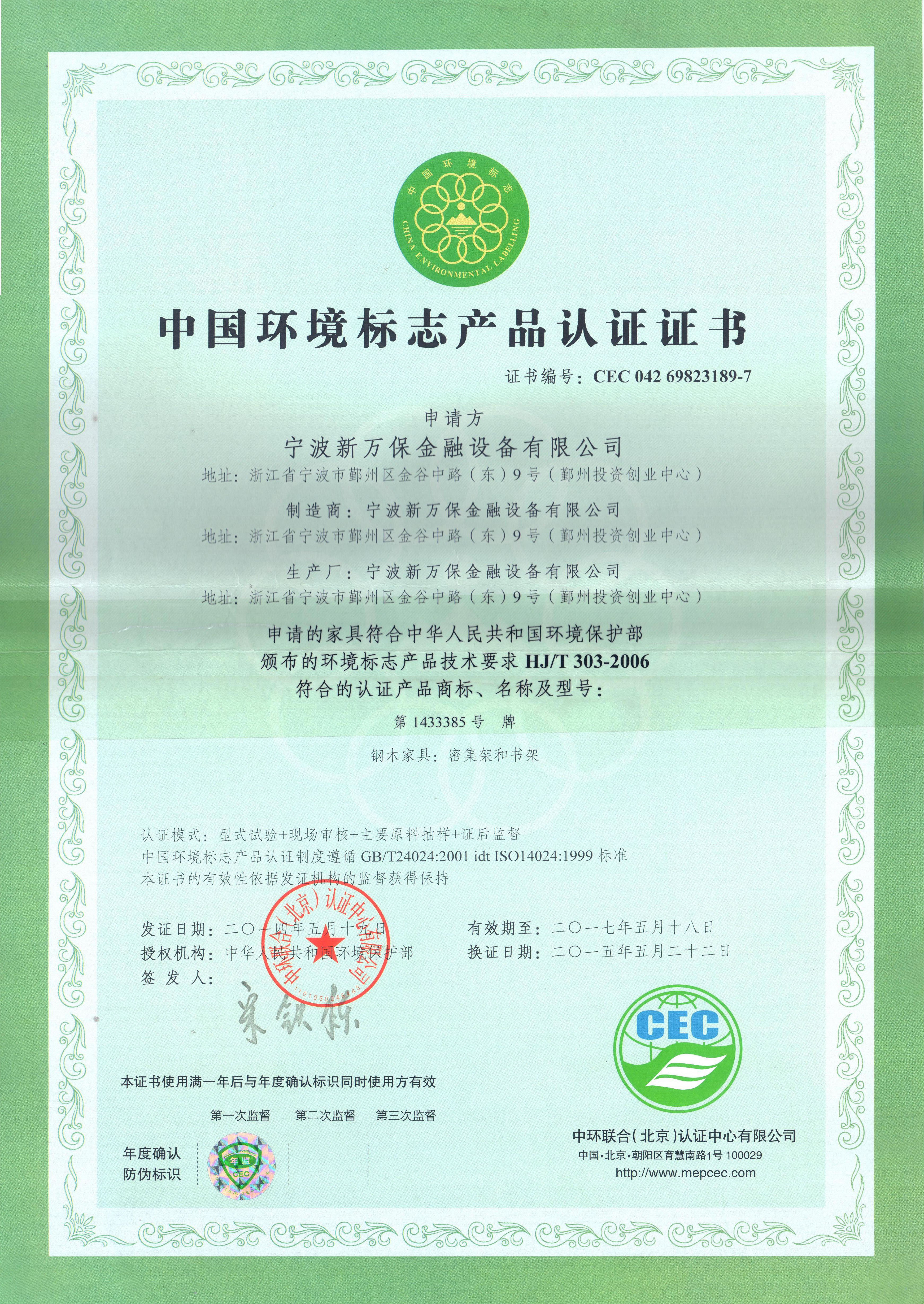 中國(guó)環(huán)境標(biāo)志產(chǎn)品認(rèn)證證書(shū)